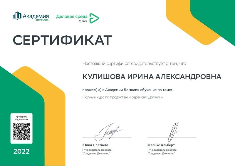 - Академия «Домклик», полный курс по продуктам и сервисам Домклик, 2022 г.