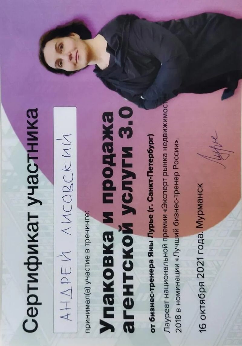 - Авторский тренинг Яны Лурье «Упаковка и продажа агентской услуги 3.0», 2021 г.