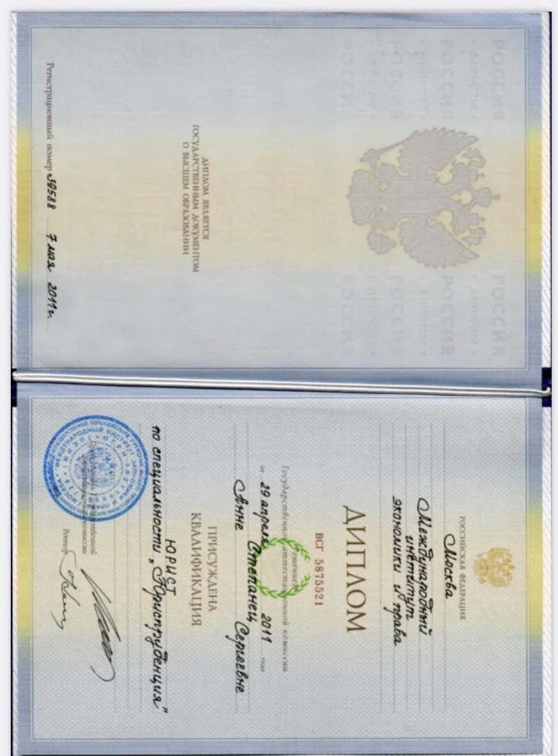 - Международный институт экономики и права, Юрист, 2007–2011 гг.