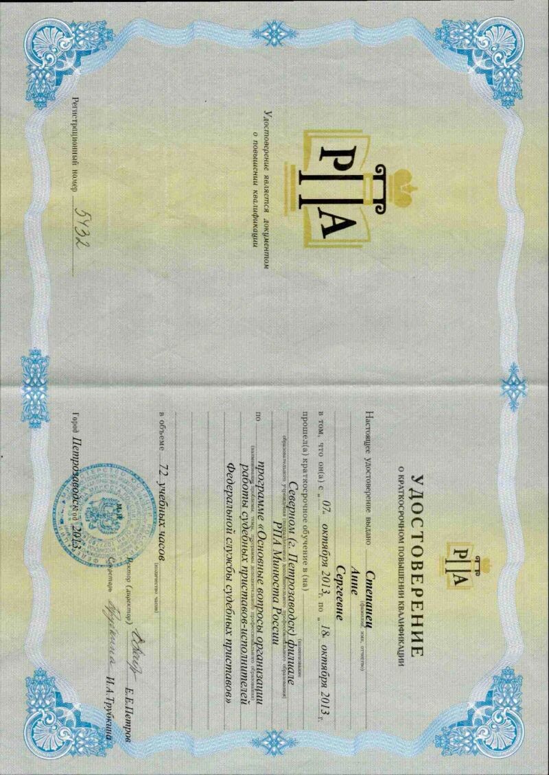- Северный (г. Петрозаводск) филиал РПА Минюста России, основные вопросы организации работы судебных приставов-исполнителей Федеральной службы судебных приставов, 2013 г.