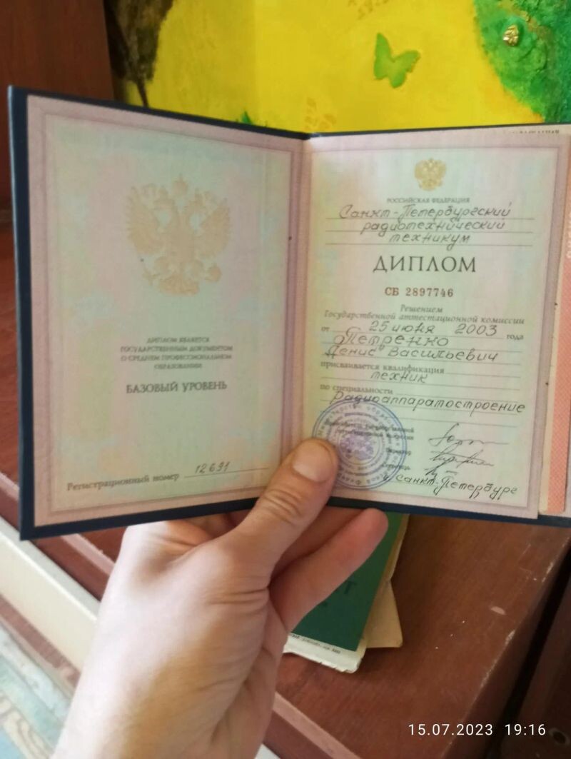 - Санкт-Петербургский радиотехнический техникум, радиоаппаратостроение, 2003 г.