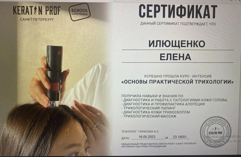 - ИП Тарасова К.С., курс-интенсив «Основы практической трихологии», 2023 г.