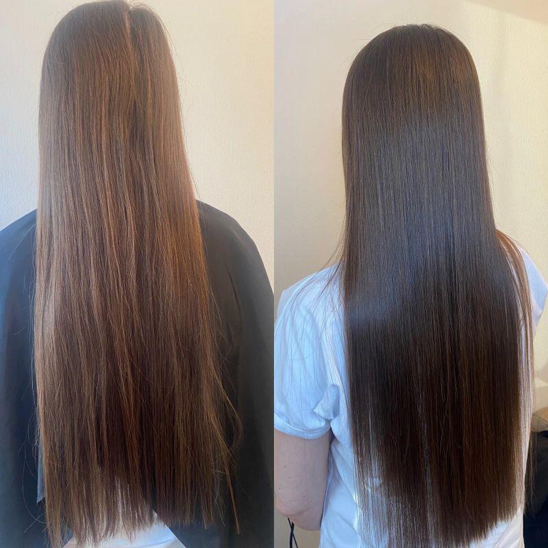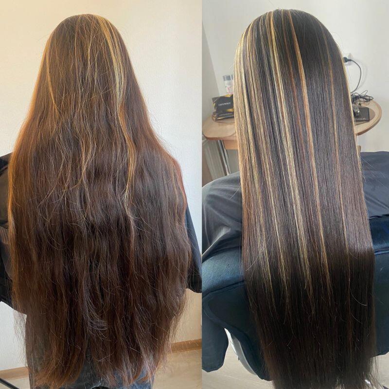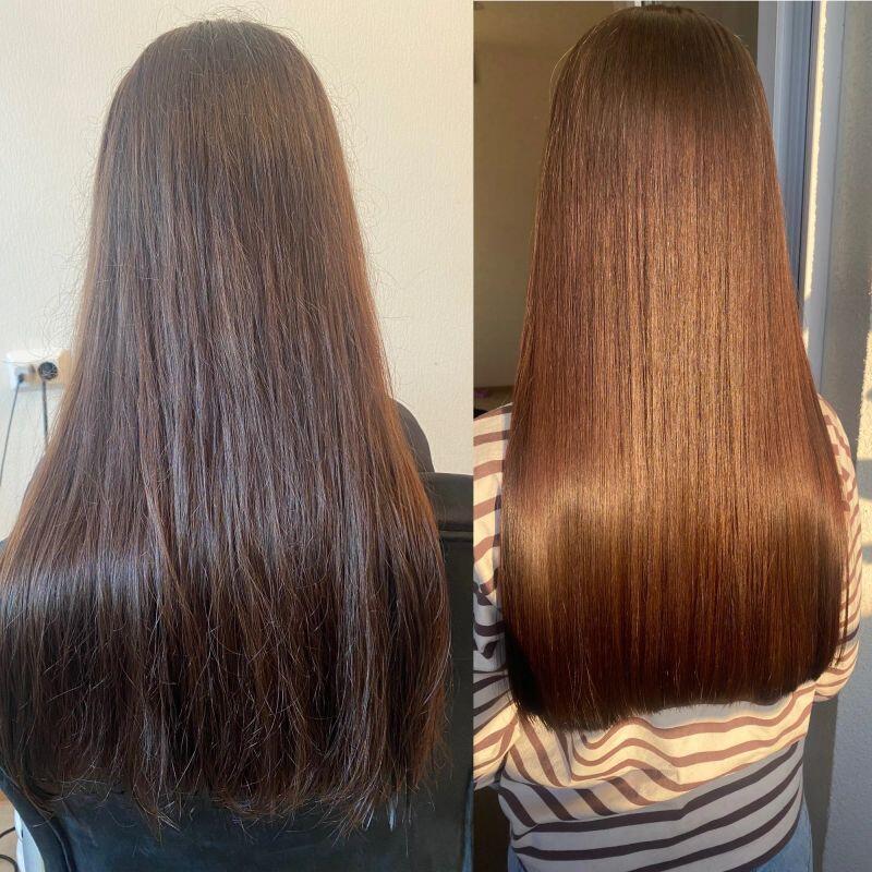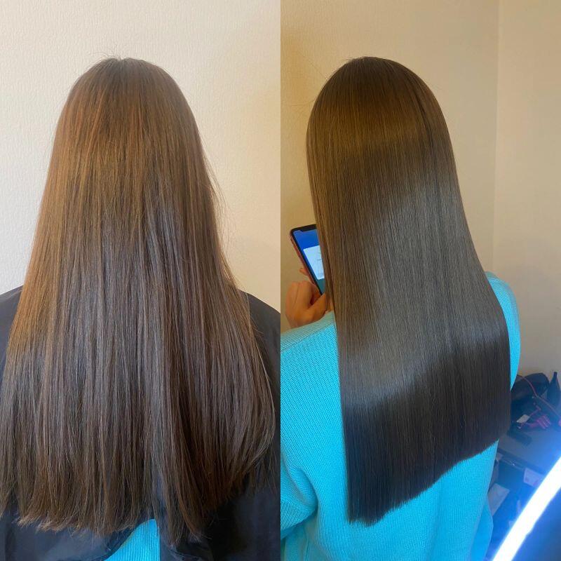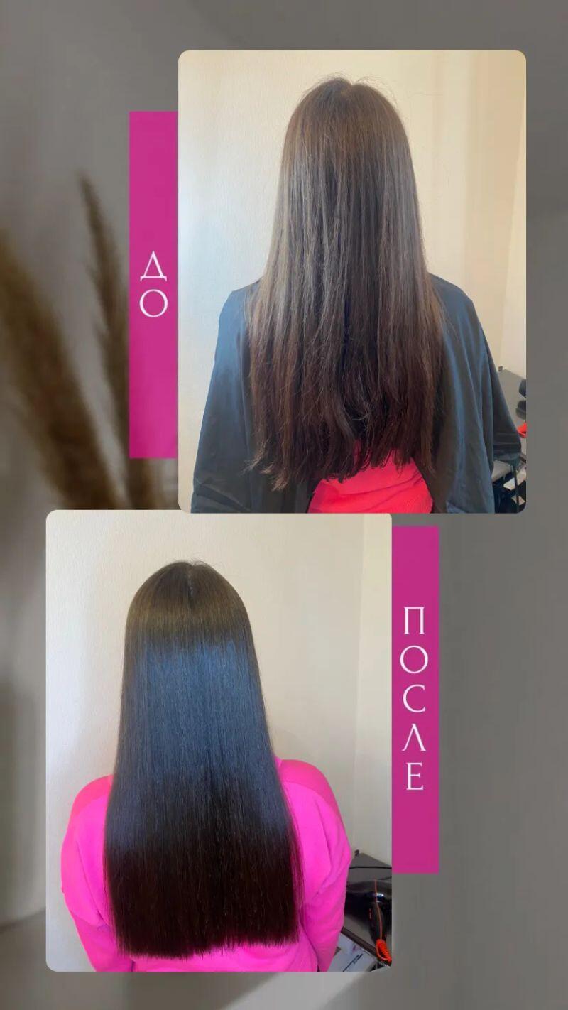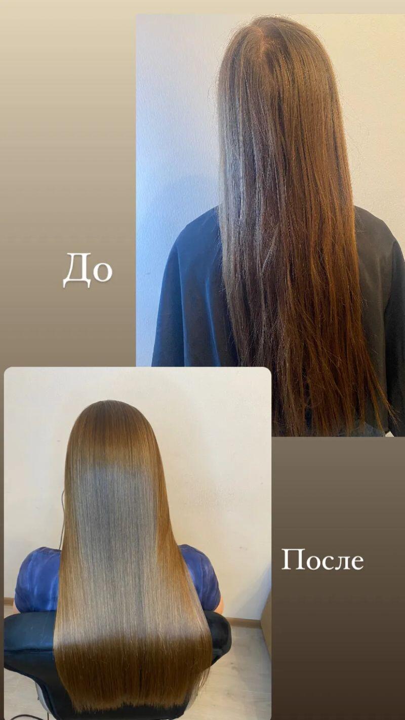 Волосы после процедуры ожили, даже цвет обновился, кайф!!! Спасибо Елена огромнейшее, буду делать у вас еще❤️