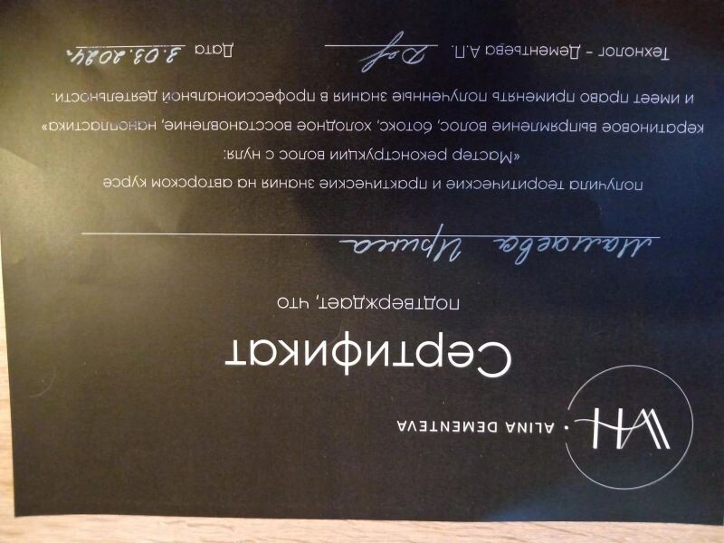 - Студия Алины Дементьевой, мастер реконструкции волос с нуля, 2024 г.