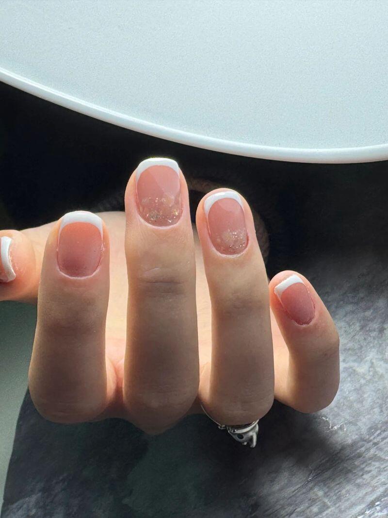 - Французский маникюр 1200 ₽ за усл.Цена за снятие, маникюр, покрытие + френч