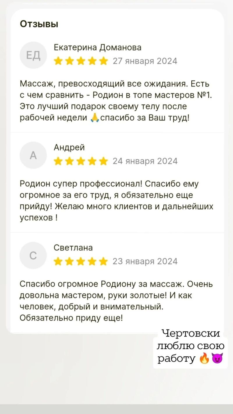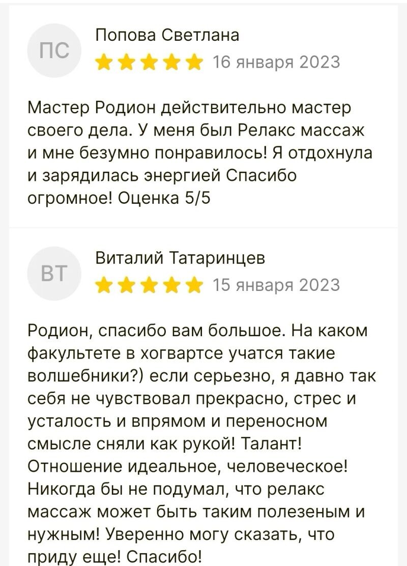 - Массаж расслабляющий 3500 ₽ за 90 мин.