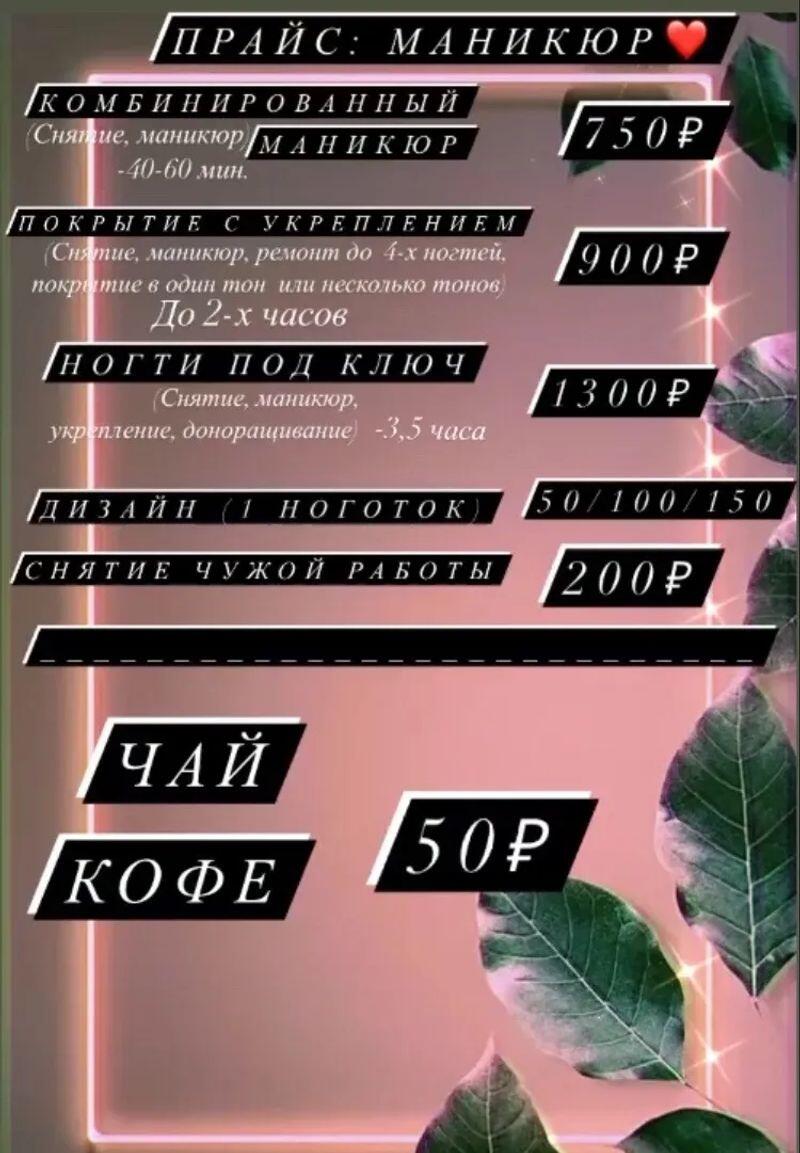- Маникюр 600 - 2000 ₽ за усл.Все виды маникюра