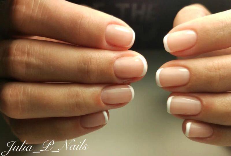 - Французский маникюр 1000 ₽ за усл.Снятие старого покрытия, маникюр, выравнивание и укрепление ногтевой пластины (при необходимости) френч + дизайн нескольких ноготков (при желании)