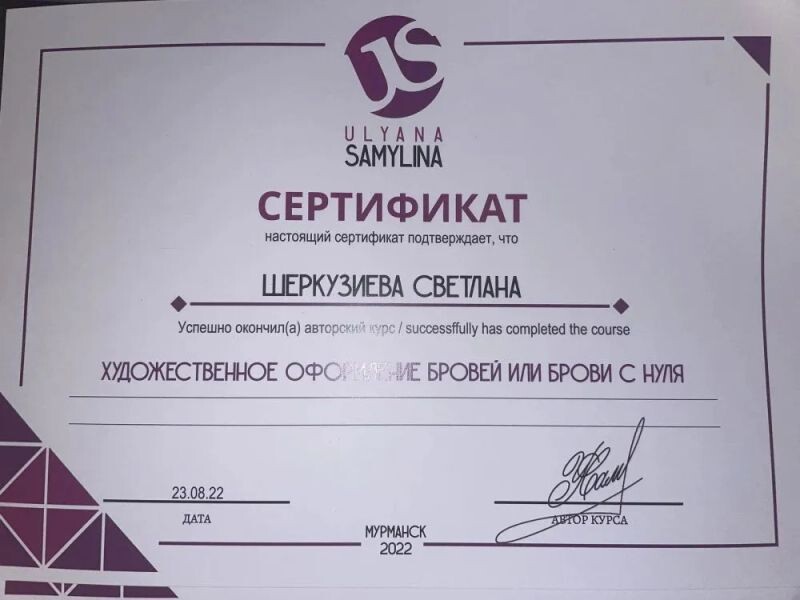 - Ulyana Samylina, удожественное оформление бровей или брови с нуля, 2022 г.