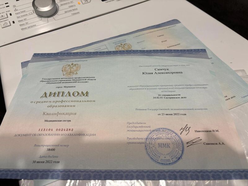 - Мурманский медицинский колледж, сестринское дело, 2019–2022 гг.