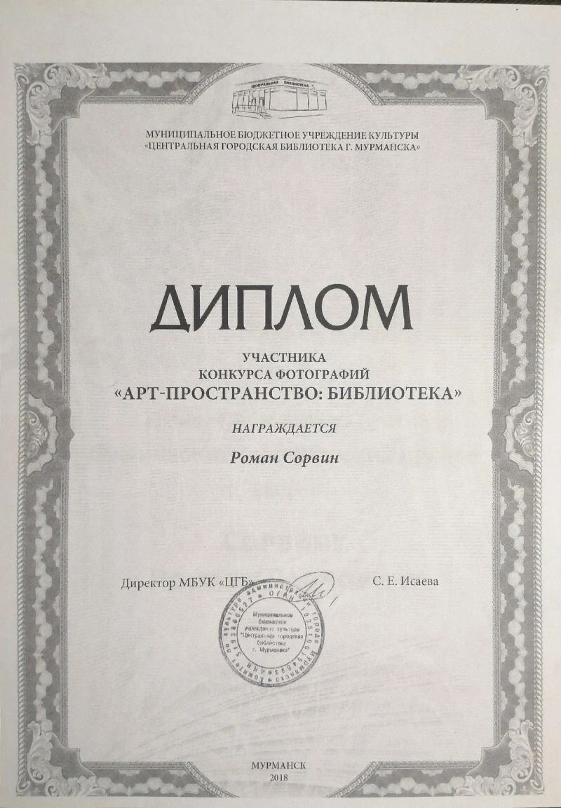 - Участник конкурса фотографий «Арт-пространство: библиотека», 2018 г.