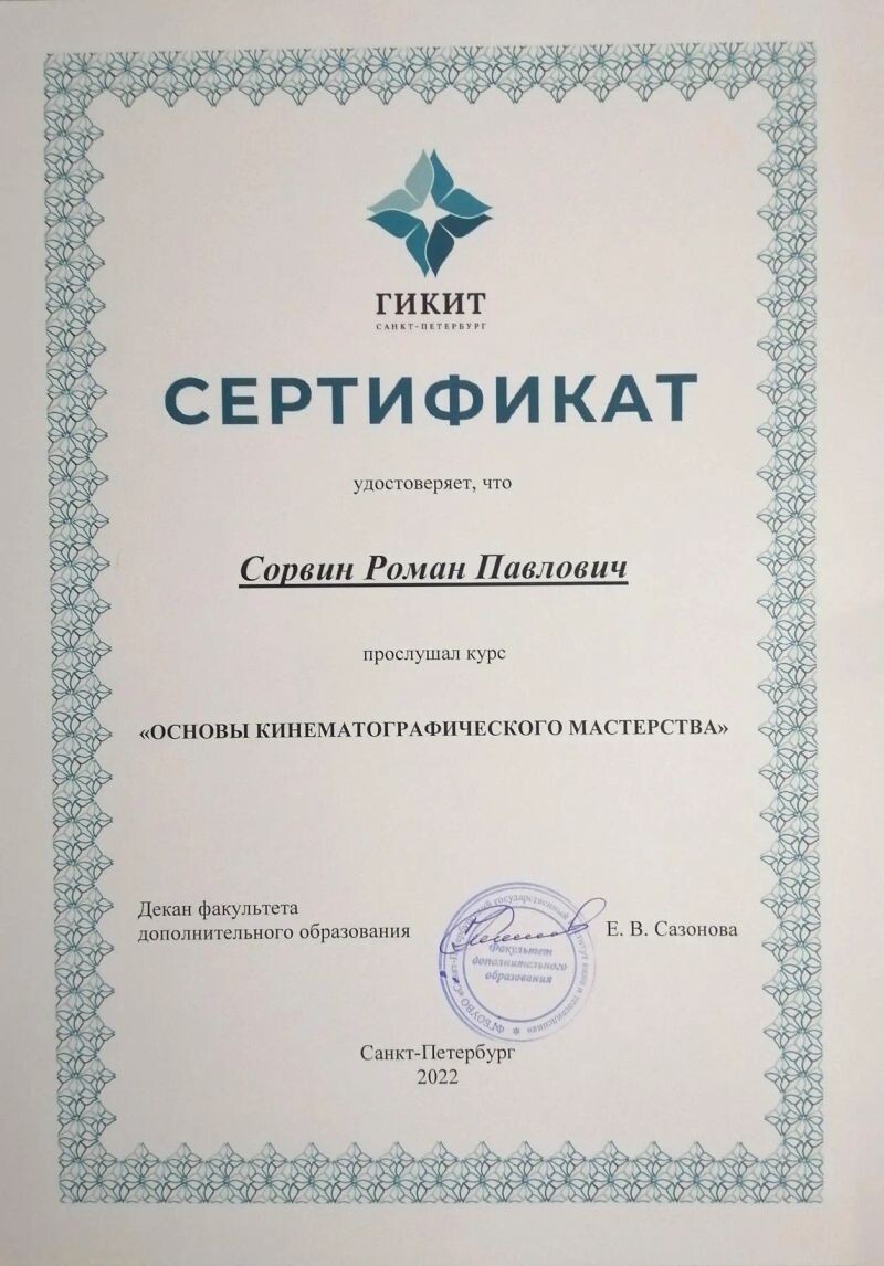 - Курсы повышения квалификации «Режиссура кино и телевидения», 2022 г.