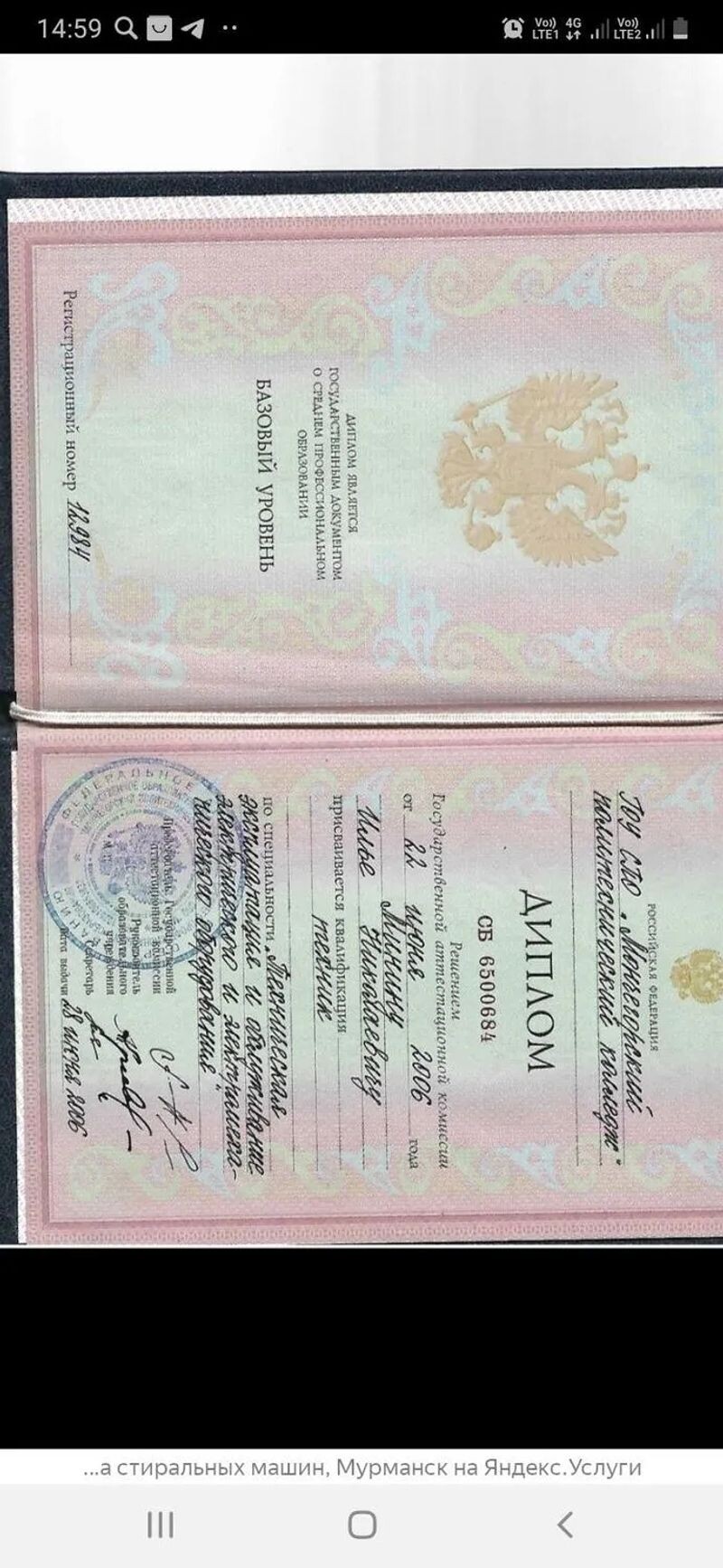 - ГОУ СПО «Мончегорский политехнический колледж», техническая эксплуатация и обслуживание электрического и электромеханического оборудования», 2002–2006 гг.