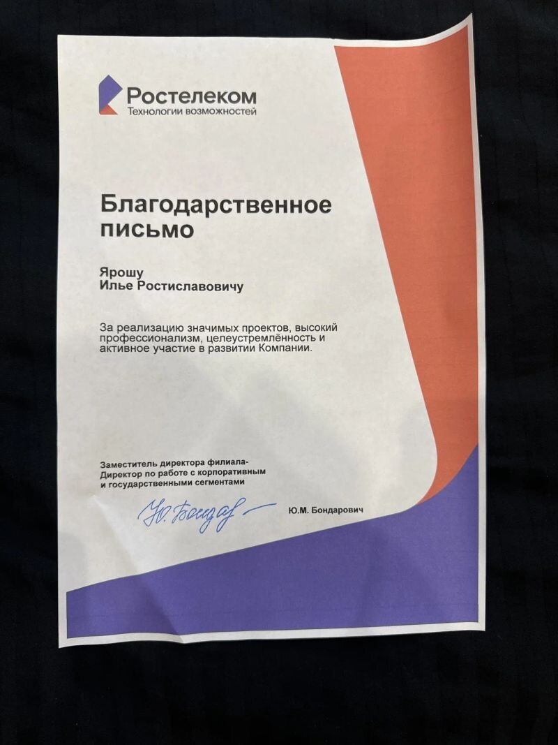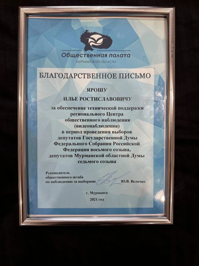 - Благодарственное письмо (с 2020 г.).