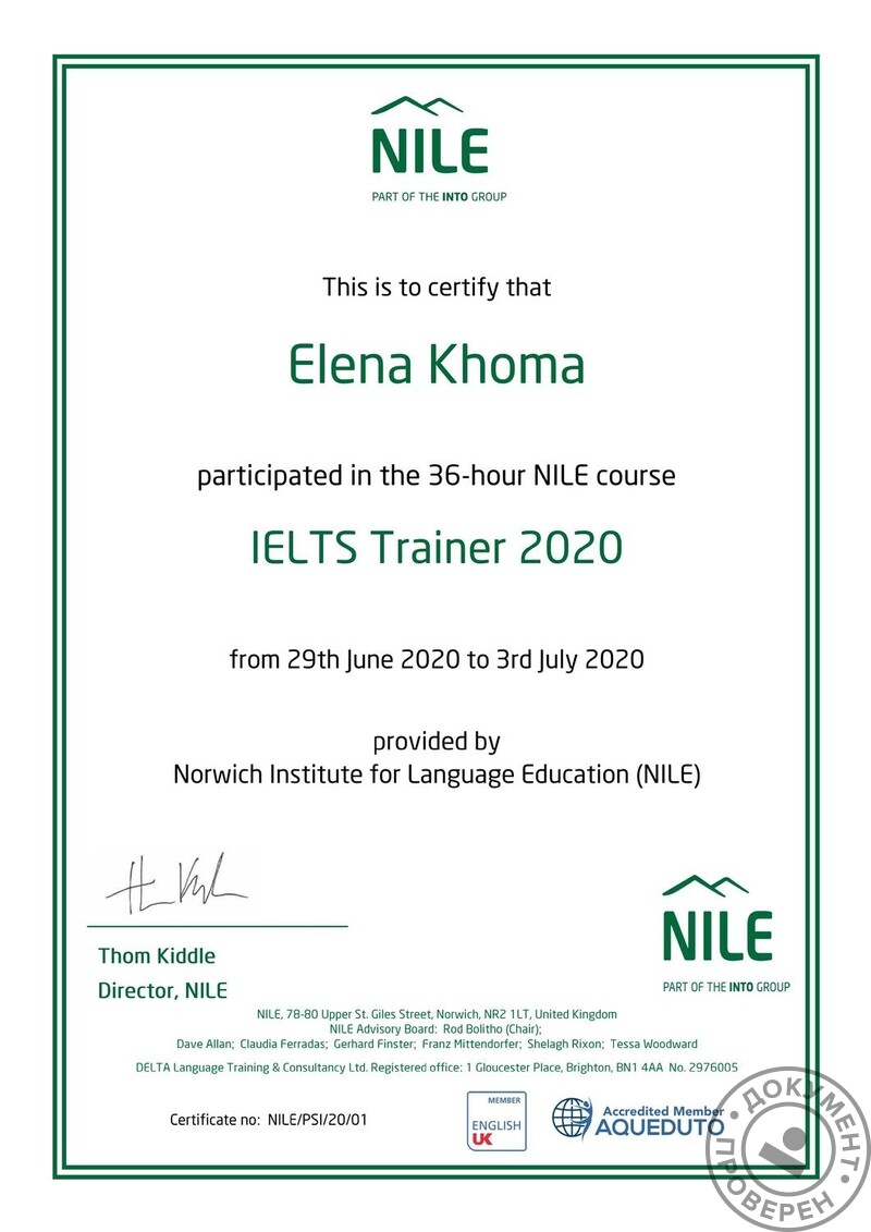 Этот специалист отлично знает свое дело. Мы работали над устной речью для IELTS, и Елена Анатольевна предлагала актуальные слова и интересные задания. Я очень довольна нашими занятиями.