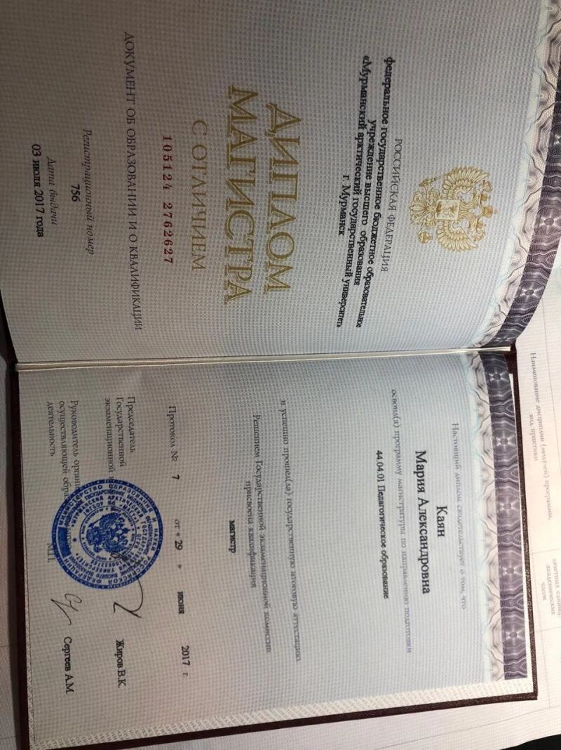 - Мурманский арктический государственный университет, факультет естествознания, физической культуры и безопасности жизнедеятельности, специальность – учитель биологии, направление – педагогическое образование, 2006–2011 гг.