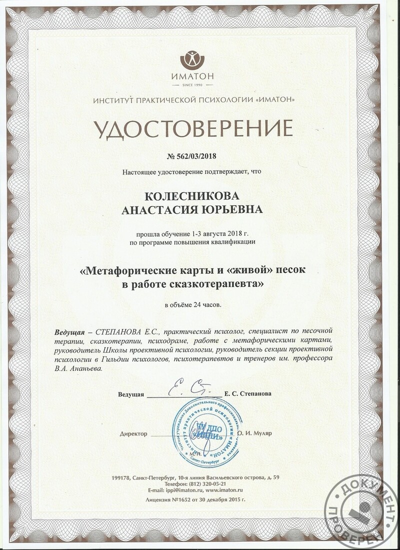 ► Колесникова Анастасия Юрьевна принимает территориально: Мурманск, а также проводит онлайн-консультации.