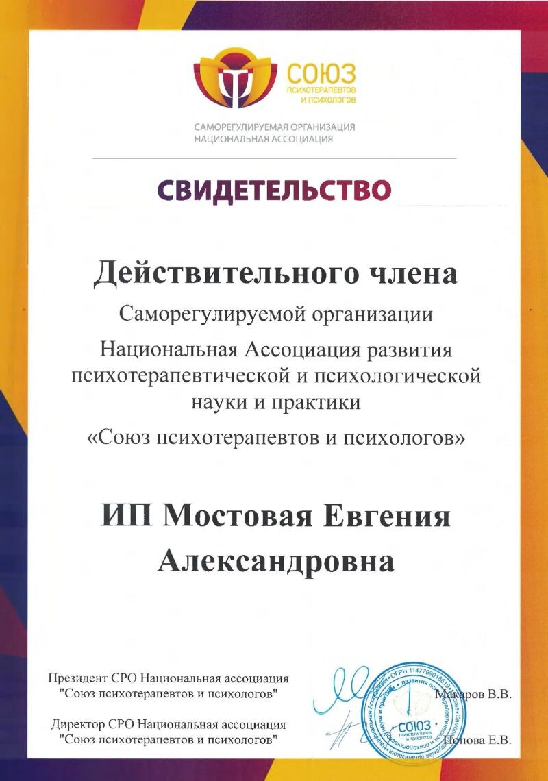 - ИП Мостовая, центр психологической поддержки «Семья», руководитель центра, практикующий психолог — 6 лет.