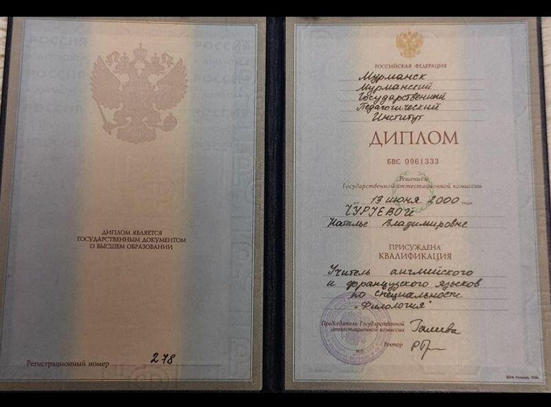 - МГПИ, квалификация – преподаватель английского и французского языков, 1995–2000 гг.