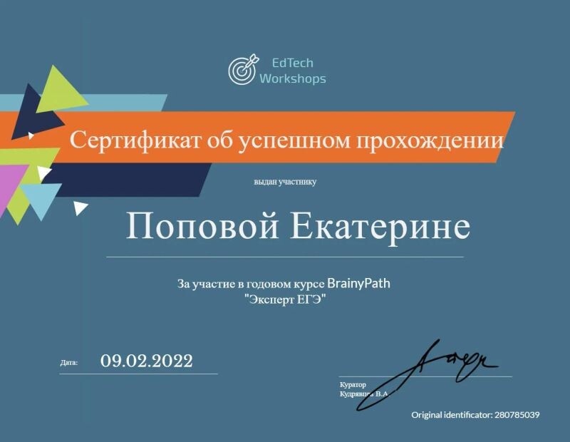 - EdTech Workshops, курс «Эксперт ЕГЭ», 2022 г.