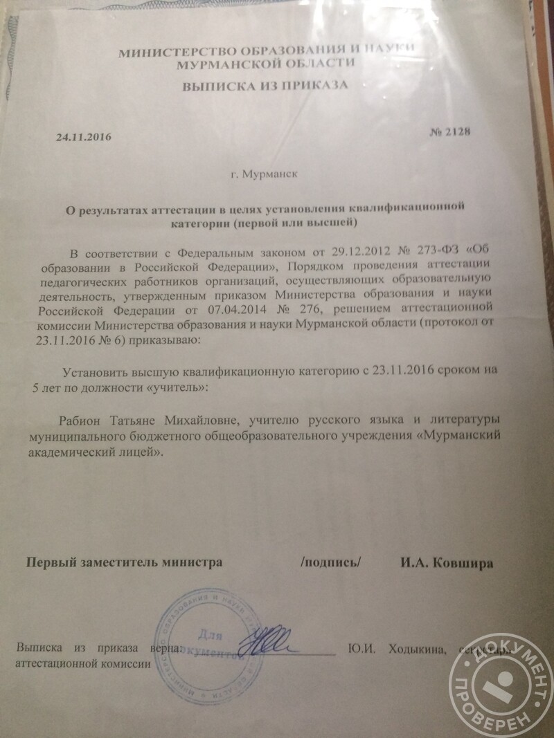 - Окончила Мурманский государственный педагогический институт, филологический факультет, специальность – филология, учитель русского языка и литературы, 2001 г.