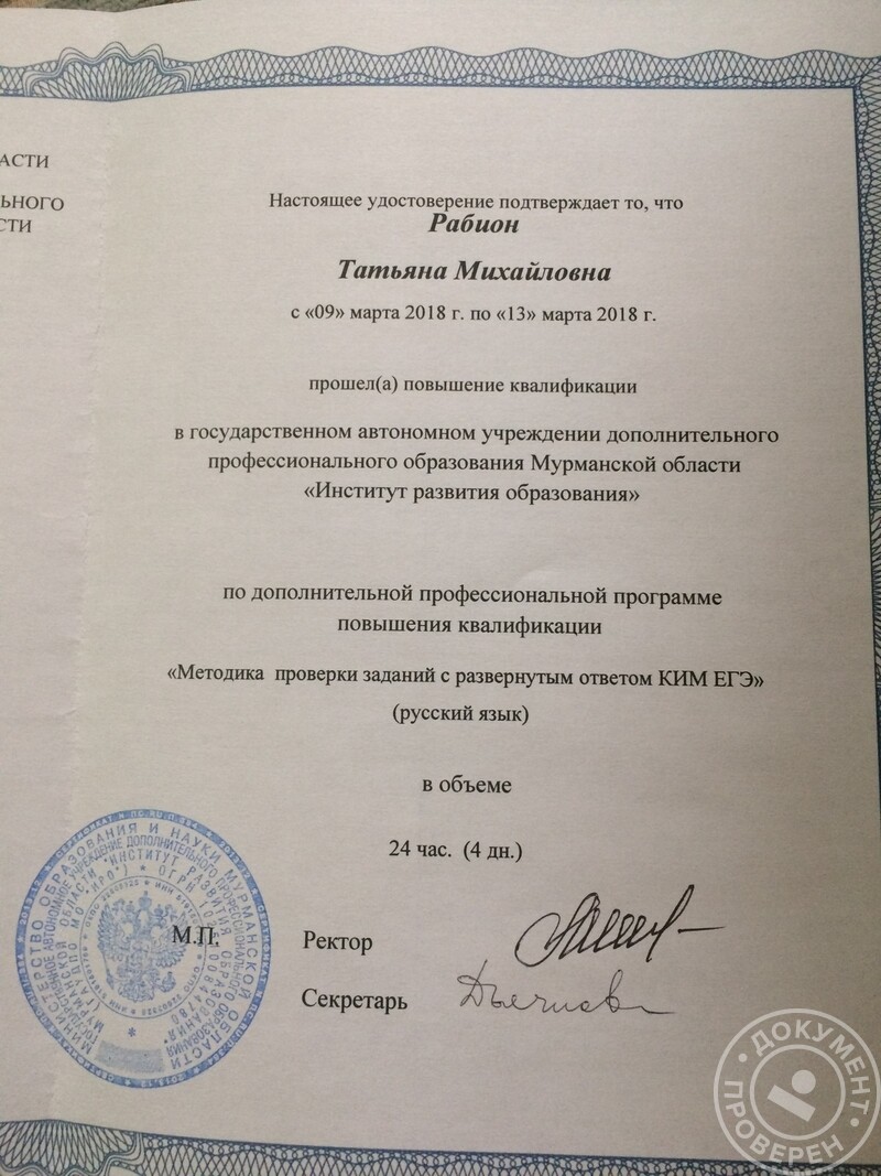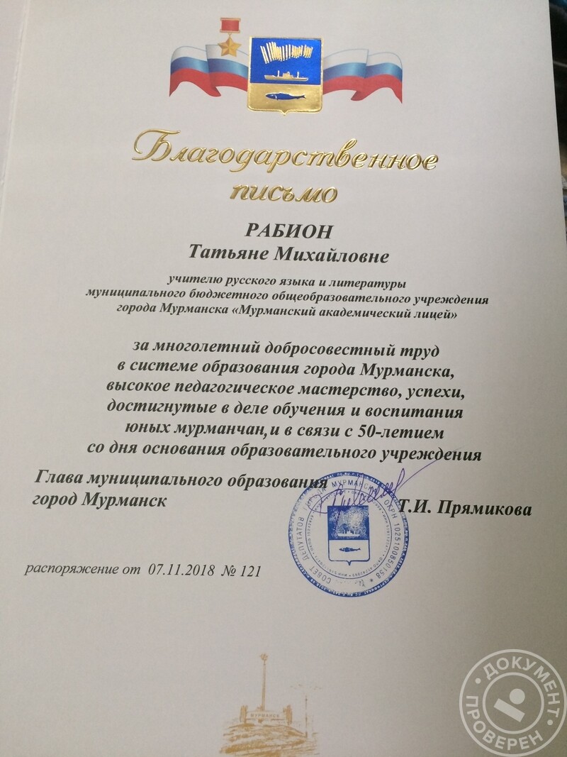 Описание: Благодарим Татьяну Михайловну за выполненную работу. Ребенок получил 5,37 баллов на ОГЭ! Начали с оценкой 3-4, а закончили 9 класс с крепкой пятеркой! Моя дочка ходила на занятия с удовольствием и интересом. Татьяна Михайловна всегда держала меня в курсе и я с уверенностью положилась на нее. Благодарю Вас, Татьяна Михайловна, за ваше доброе отношение и профессионализм!