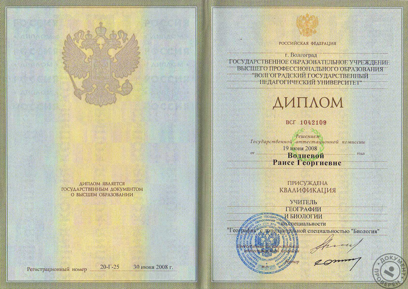 - Окончила Волгоградский государственный социально-педагогический университет, естественно-географический факультет, специальность – учитель географии и биологии (2008 г.).