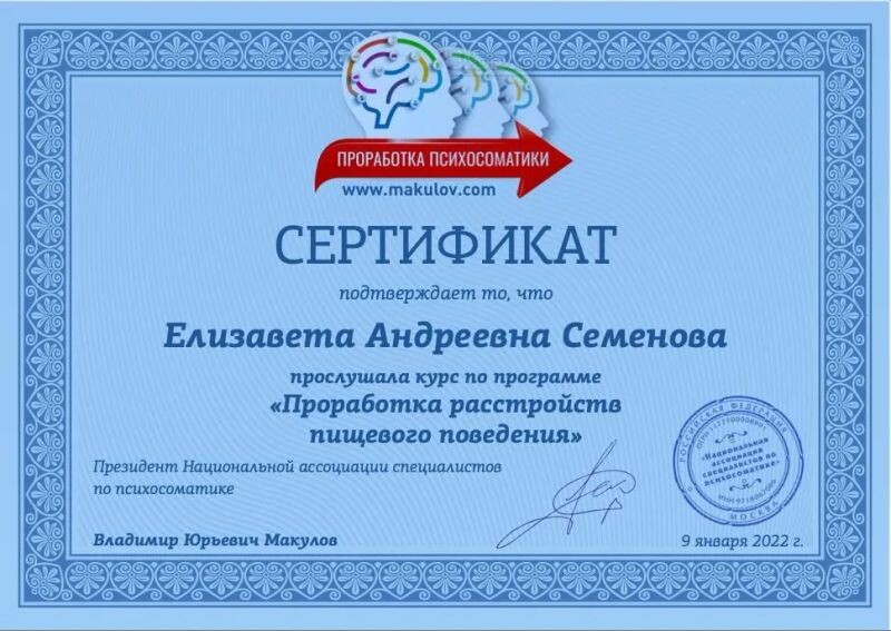 - Курс «Проработка расстройств пищевого поведения», 2022 г.