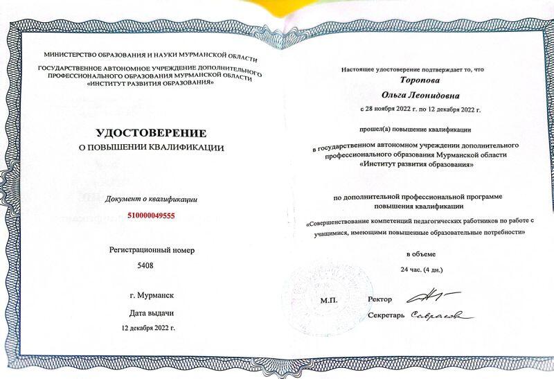► Торопова Ольга Леонидовна проводит занятия территориально: Мурманск, а также дистанционно в онлайн-формате.