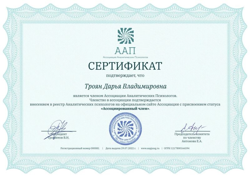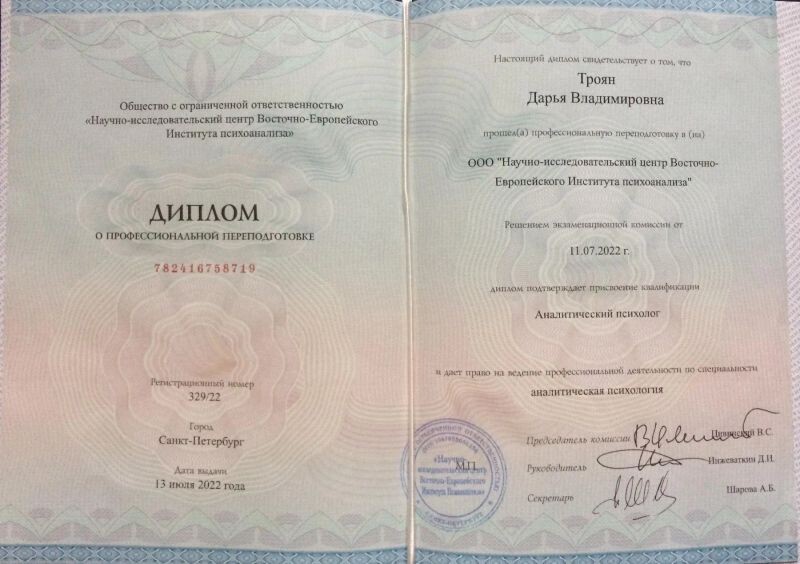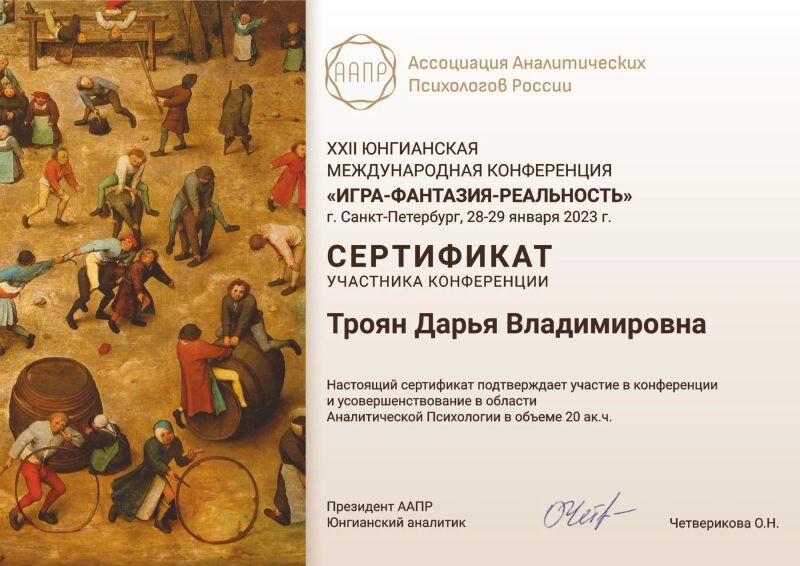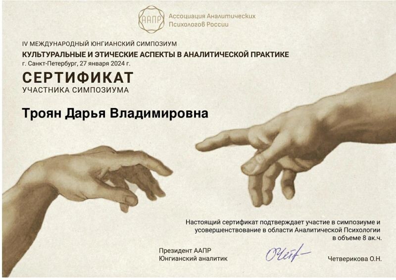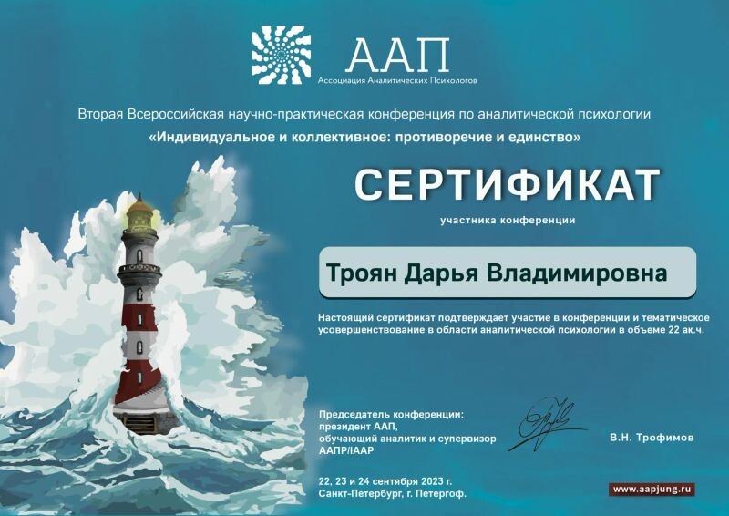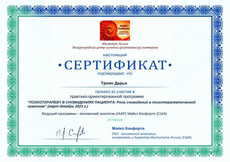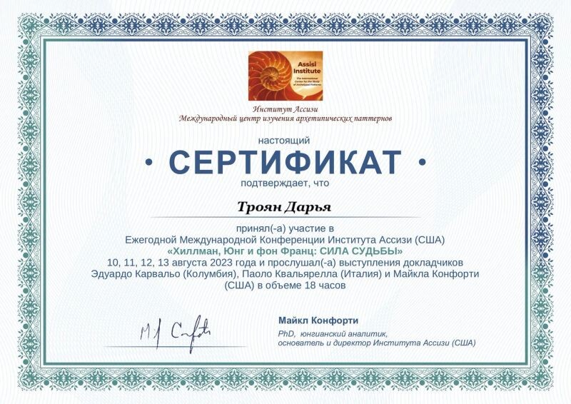 - Институт АССИЗИ, аналитическая психология, аналитик архетипических паттернов (с 2022 г.).