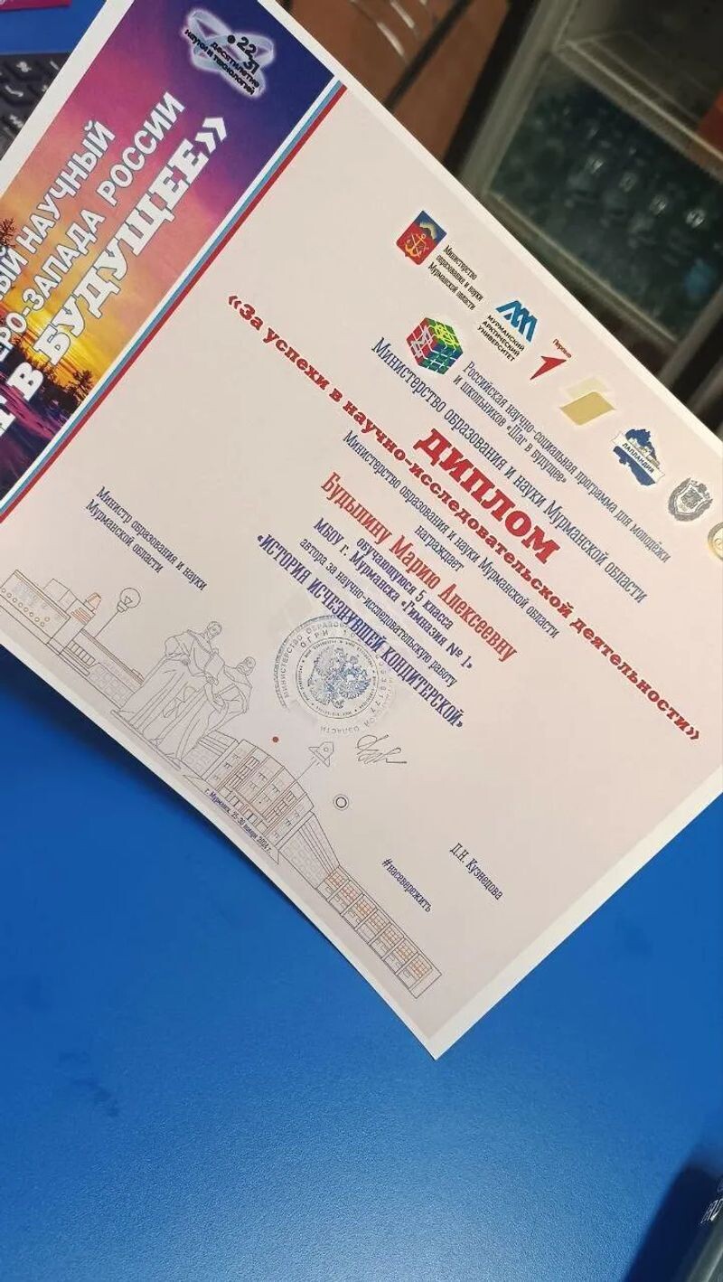 - Мурманская областная детско-юношеская библиотека, диплом I степени за подготовку победителей областного конкурса чтецов «Читаем басни Крылова», 2019 г.