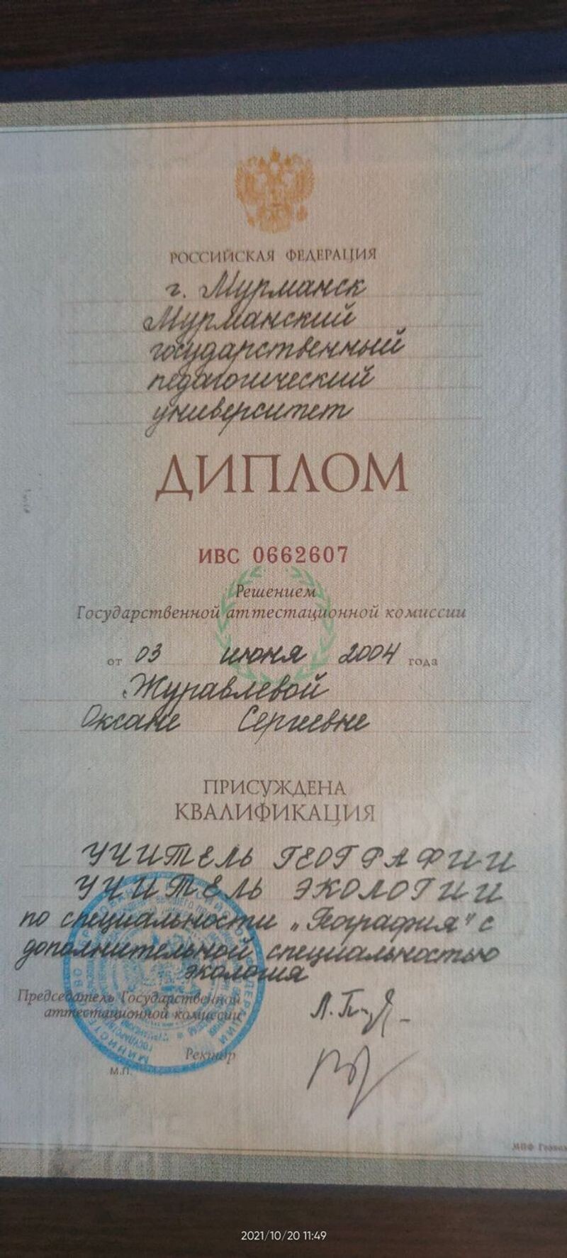 - Мурманский государственный педагогический университет, 1999–2004 гг.